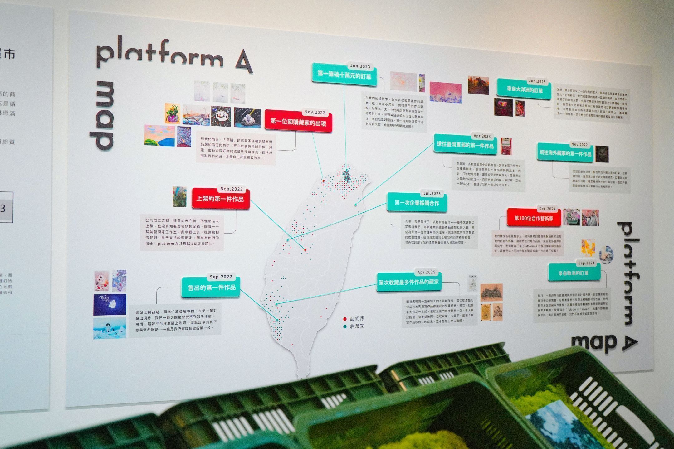 platform A像是藝術家與收藏家的月老,牽起彼此的緣分。這裡展示了自成立以來,上百位收藏家與藝術家的分布地圖,看見藝術如何跨越空間與時間的界線,並且在地圖標記下每一段珍貴的相遇與足跡。