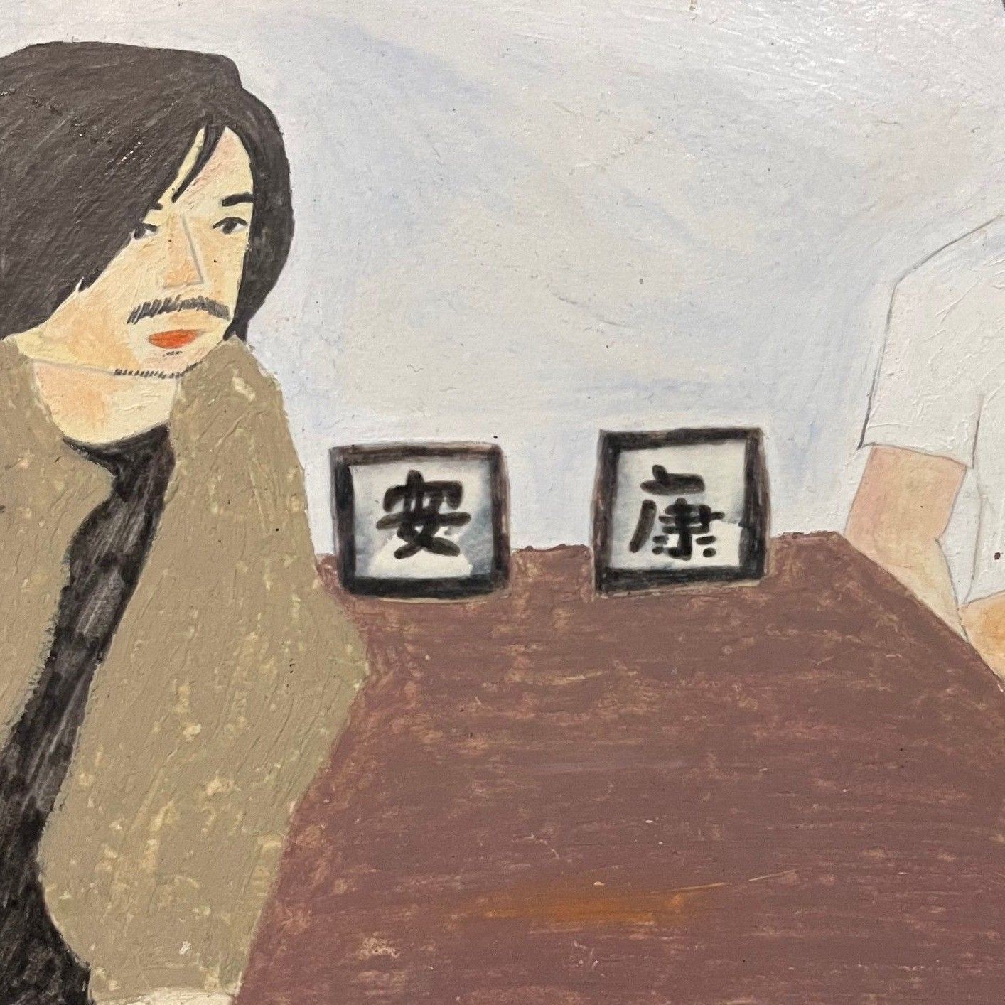 藝術家將這些內心獨白,轉化作一個走在街道上的背影,這個角色看似步履蹣跚,內心有些落寞與絕望。畫作中,藝術家巧妙地以背影作為視覺焦點,而右側的寫著「寬裕」的紅色看板顯得格外引人注目,甚至帶有諷刺意味,兩者對比之下使畫面充滿故事性與戲劇性。