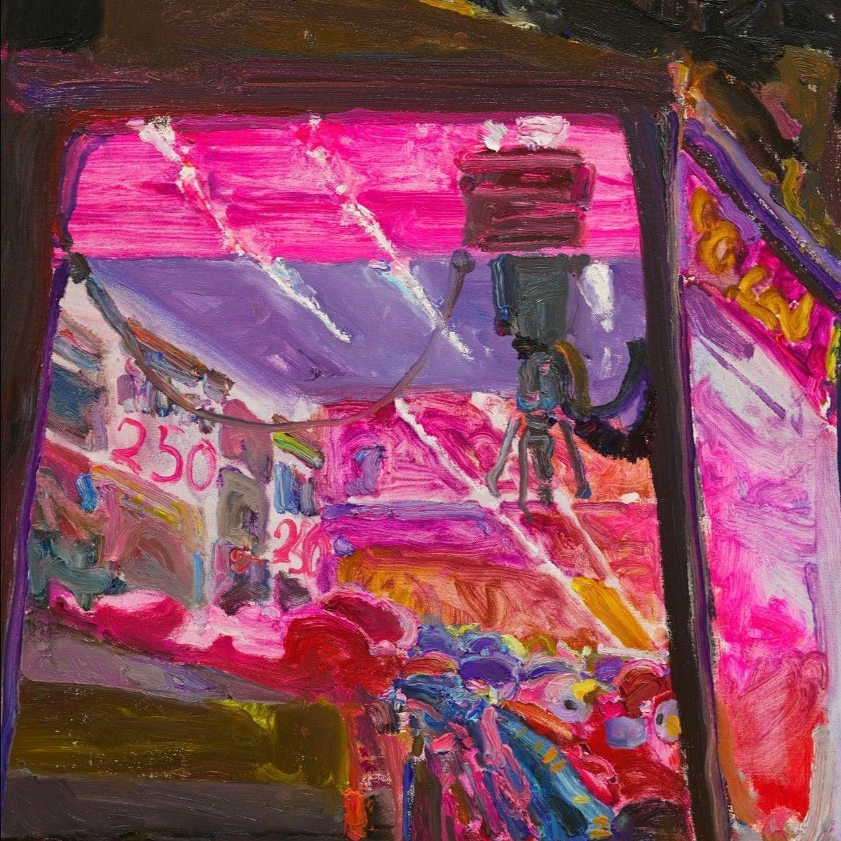 這系列作品將遊樂園常見設施放進自然環境中,夜色籠罩的森林中,光影灑落映照出森林的倒影,奇幻的構圖與畫面,讓碰碰車彷彿在無人的狀態下依舊隨著時間移動著。