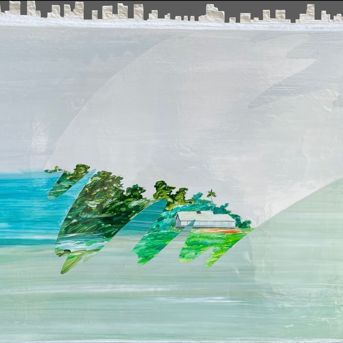 view more…戴于濱 (1996-) 畢業於國立台南藝術大學造形藝術研究所,擅長以壓克力彩創作。 「空間」是藝術家創作中最核心的主題,享受獨處的戴于濱細細品味「一個人待著」的感受,簡潔的線條搭配大面積的冷色調色塊,讓尋常的書房、臥室、浴室等空間充滿私密又寧靜的安全感,可以一起抽離放空。 作品中的空間往往維持在靜止的狀態,戴于濱運用壓克力顏料的特性創作出一個視覺上低彩度、平光的世界,看起來似乎不太真實,卻又都是常見的家具植栽擺設,製造出既熟悉又疏離、令人玩味的觀看效果。