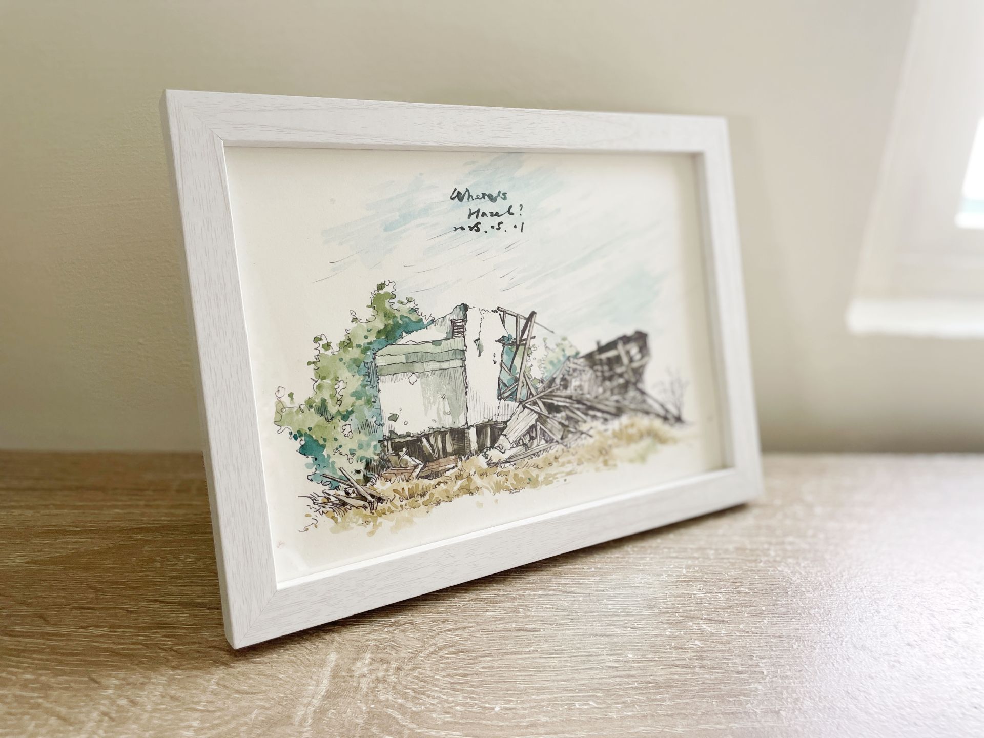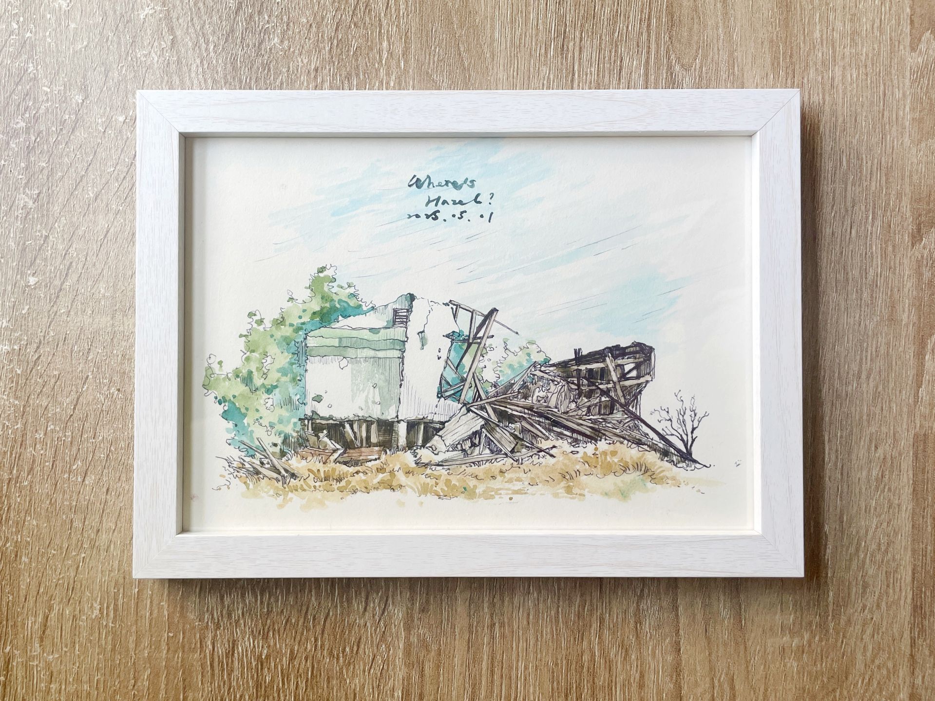 鴨寶偏愛描繪眼前實際存在的景物,那些健行路上的樹木、瀑布、山巒都是她親自走訪,一步一步創造的邂逅。這張美國CDT步道的速寫描繪了小鎮Pie Town,這些來自於個人最真切的觀察,讓異國風情與旅行中的新奇冒險也躍然紙上。