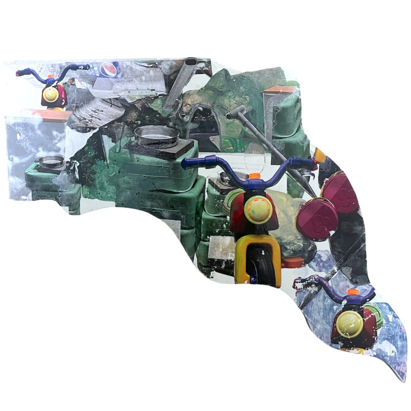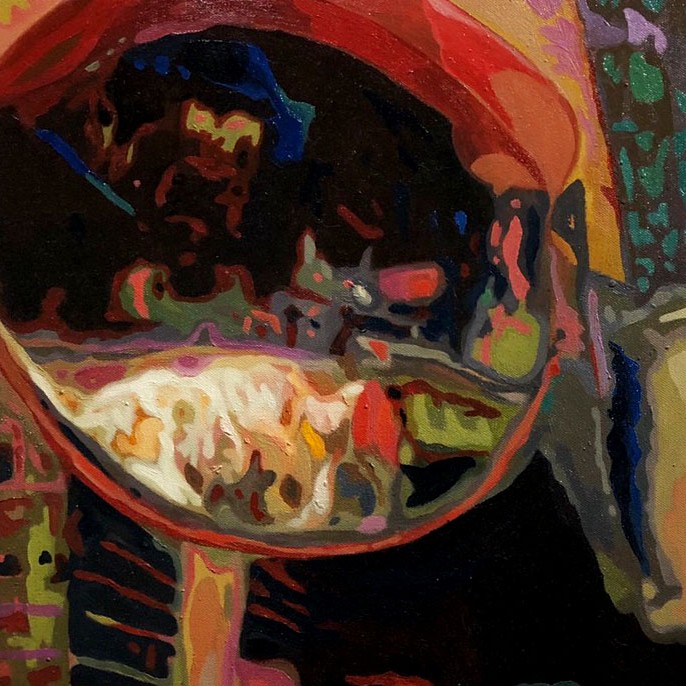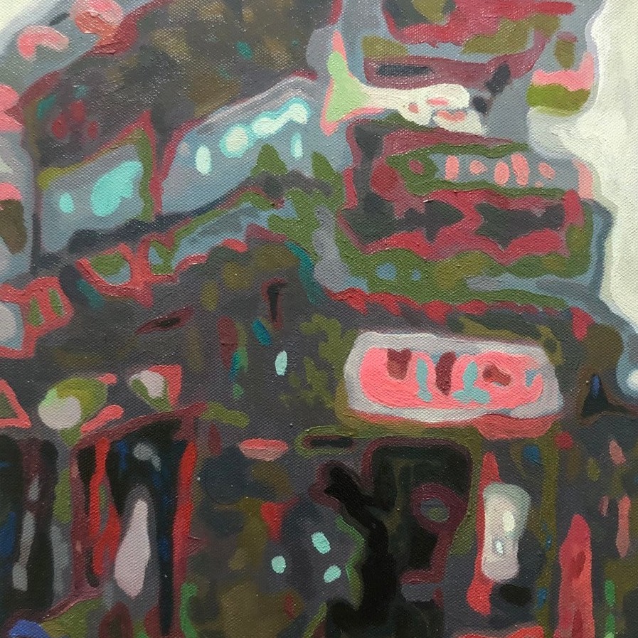 在繪畫作品時,藝術家初搬進市場及高架橋對面的新工作室,嘈雜不斷的聲響改變了創作環境,刺激他發展出新的創作語彙。他在作品裡面疊加上現有的環境樣貌,回應這些聲響所帶來的創作感受。所有的經歷沒有好與壞的分別,儘管有些經歷及改變雖使人不適,但生命卻也因此變得深厚及豐富。