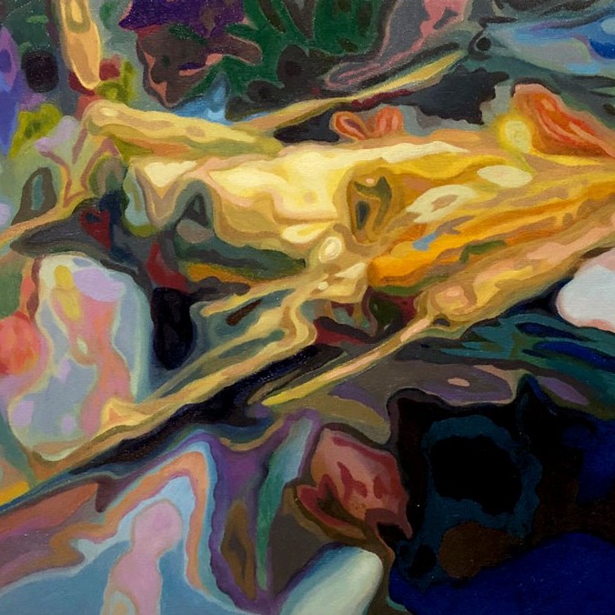 view more…張祐齡 (1997-),國立東華大學藝術與設計學系研究所畢業,擅長以炭筆及油畫顏料創作。 張祐齡的作品從自己的經驗出發,討論高敏感族群內在情緒的變化。高敏感族群相較其他人,更容易覺察到自身情緒的波動,張祐齡透過油畫得以流動、堆疊的媒材特性,將情緒的不確定性與細微變化表達出來,希望觀者在欣賞的過程中,也能得到被理解、情緒被接住的感受。 而在花蓮求學的六年中,張祐齡受到環境的啟發,發現流水、石頭等自然景物蘊含飽滿的能量,開始將大自然融入創作中,作為情緒表達的隱喻,往往能在她的作品中,感受到強大的張力與豐沛的生命力。