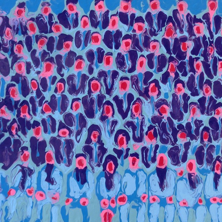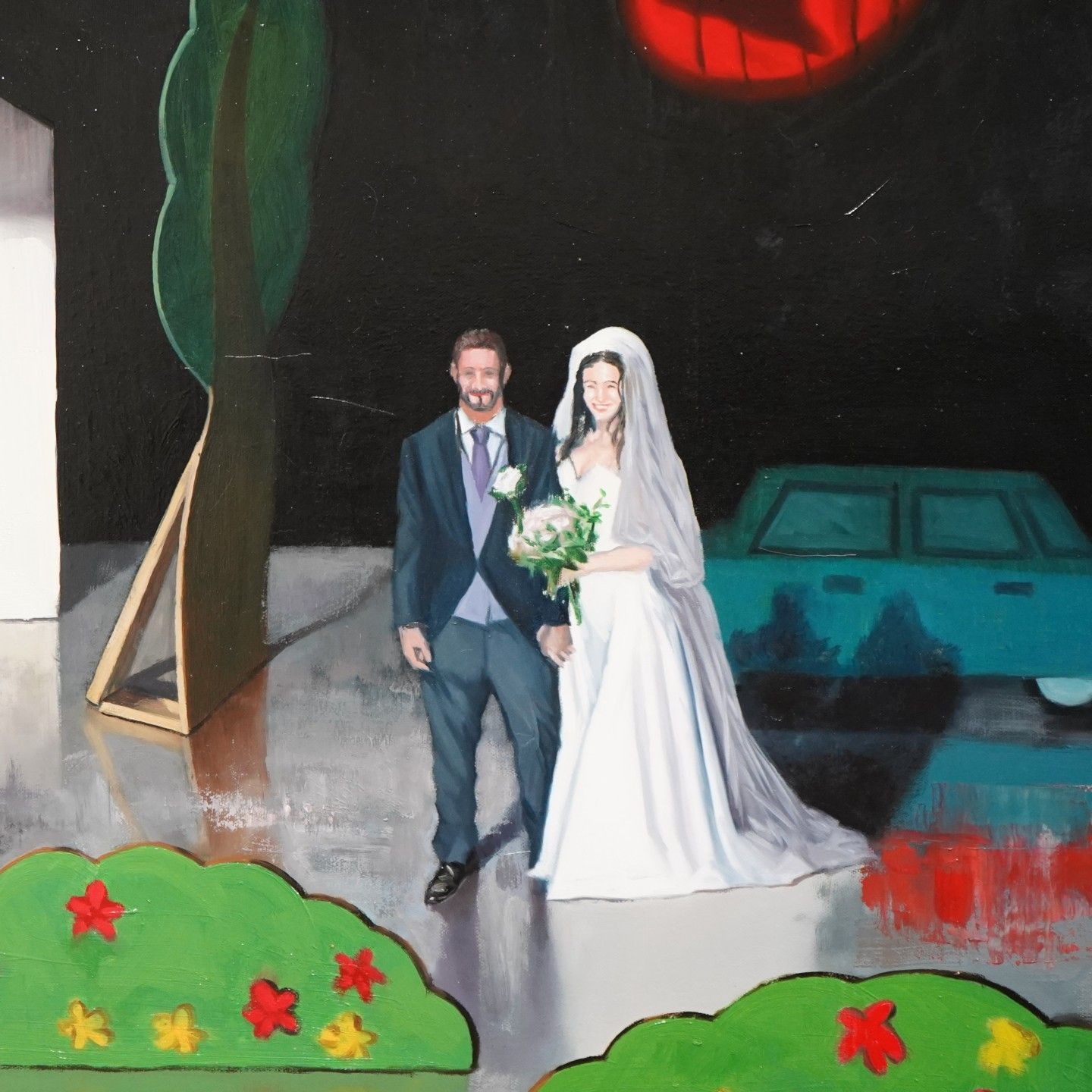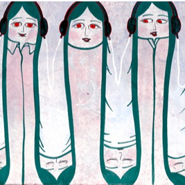 這件作品的靈感來源於臺灣特有種鳥類──台灣藍鵲。「長尾山娘」是台灣藍鵲的別名,牠們的特性時常為了護巢而攻擊人類。作品間描繪了不同人被台灣藍鵲「巴頭」的情境,潘羽鍚一面感到矛盾,一面幽默地想著:這真的好痛!不過能被長尾山娘巴頭,何不是件榮幸的事情呢?