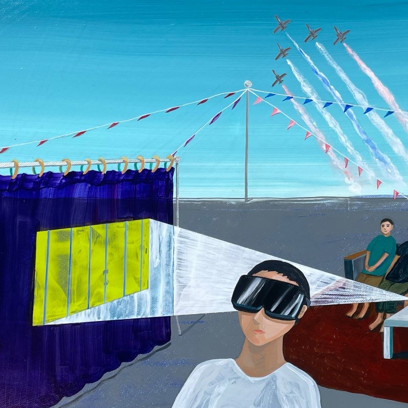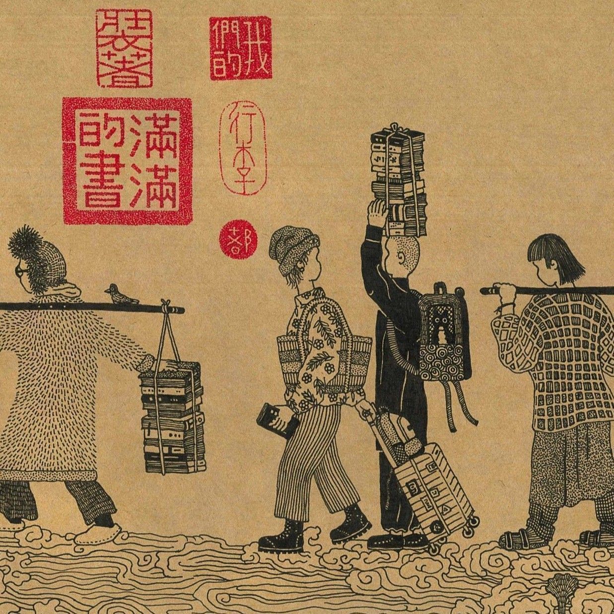 view more…潘羽鍚(2003-),現就讀於國立清華大學中文學系及藝術與設計學系創作組,專注於原子筆及版畫創作。 作為新銳藝術家,潘羽鍚的創作不受單一主題束縛,而是賦予自身業餘者、修補匠和手藝人,三種角色的結合。來自薩伊德的「業餘者精神」強調不囿於單一專長,對於各式觀念充滿好奇,且保有知識分子的獨立與清醒;「修補匠」的概念由李維-史陀提出,以現有、不完美、非專業的材料應用而成,是一種靈活且具實驗性的創作態度;「手藝人」精神則源於藝術家奚淞,強調以簡單的工具,專注而純粹地投入創作。比起急於確立創作核心,潘羽鍚更重視享受創作與實驗的過程,藉由不斷探索與實踐,逐漸形塑獨特風格。 結合中文與藝術背景,他的作品蘊含豐富的文學與歷史底蘊。潘羽鍚善於將文學與圖像結合,以仿傳統水墨畫卷的形式,融入當代人物與場景,營造出既古典又新穎的觀看印象。他的作品富含敘事性,並巧妙運用「印章」作為訴說載體,創造出可供觀者細細品味、充滿趣味的觀賞空間。 潘羽鍚特別著迷於原子筆與版畫創作,近期也出版了漫畫手札。原子筆對他而言,是從小熟悉的工具,童年時常在牆壁、課本、餐巾紙上塗鴉,既能書寫又能繪畫,同時使他思考到圖像與文字間的關聯,進而選擇原子筆成為符合其創作脈絡的媒材。 懷抱業餘者、修補匠與手藝人的精神,潘羽鍚期許自己的創作如滾動的石頭般靈活多變,在不確定中找到創作節奏,於內容與形式之間大膽嘗試與轉換,走出一條屬於自己的創作道路。