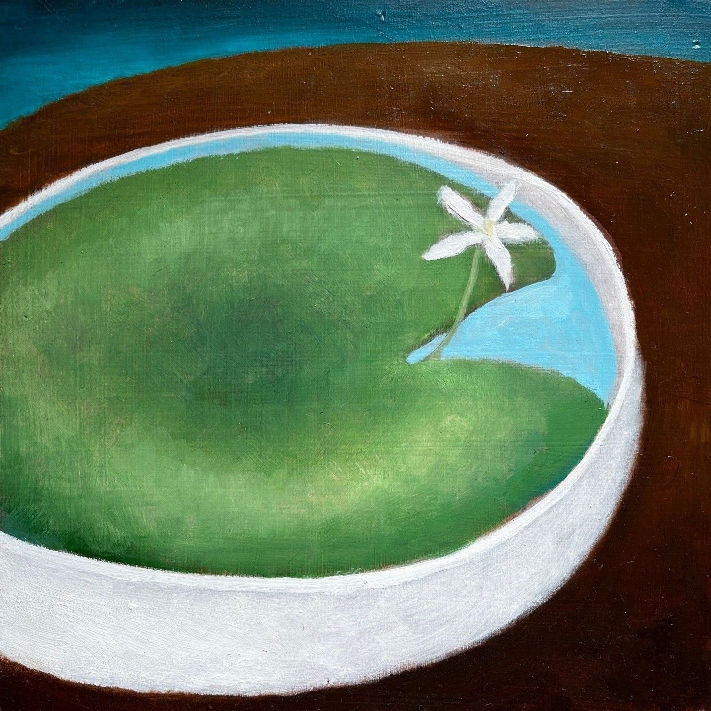 李依恬在2020年創作的藍蓮花系列作品,是期許人們能夠在經歷人生變動時,能夠接受和放下過往,為自己創造新的未來。而在後疫情時代中,藝術家的思想也開始逐漸轉變,在意識到世事如浮雲般變化之後,似乎一切的執念和恐懼都可以被放下。